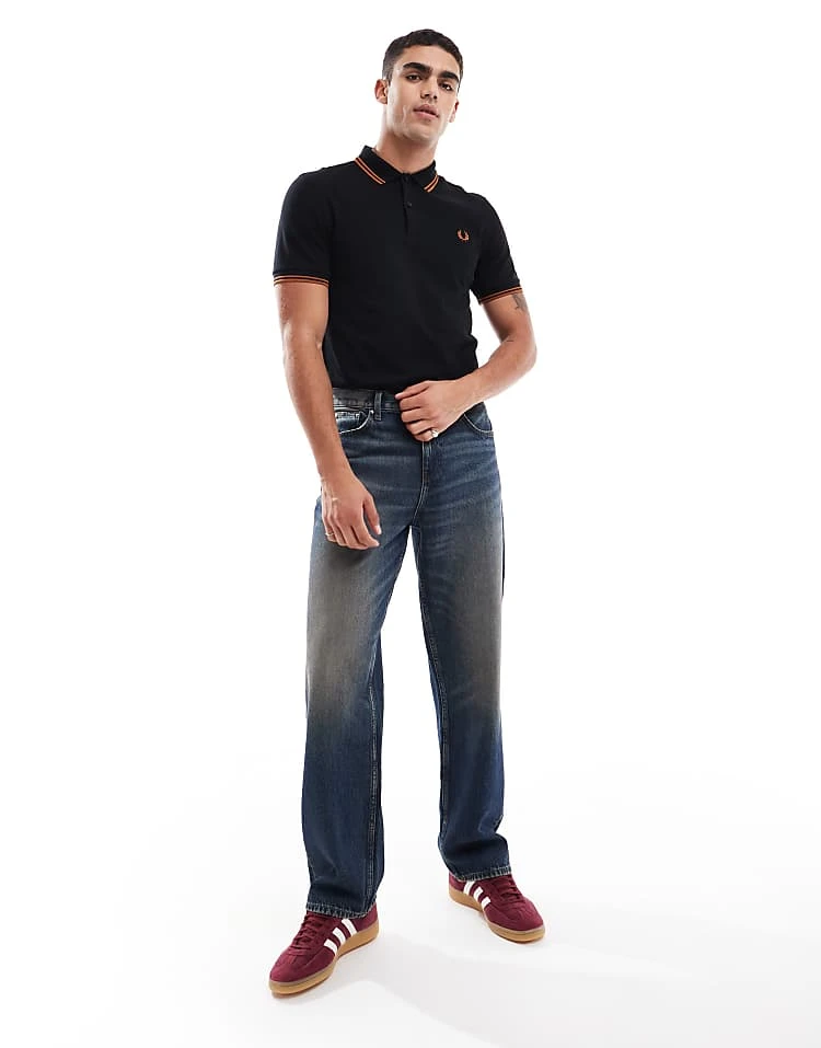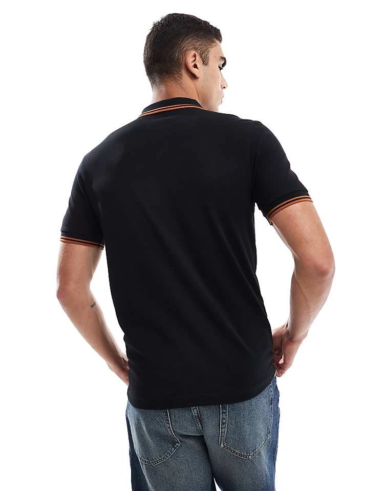 Fred Perry Twin Tipped Polo Shirt In Black And Orange For Men