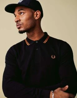 Fred Perry Twill Drawstring Straight Leg Trousers In Black For Men